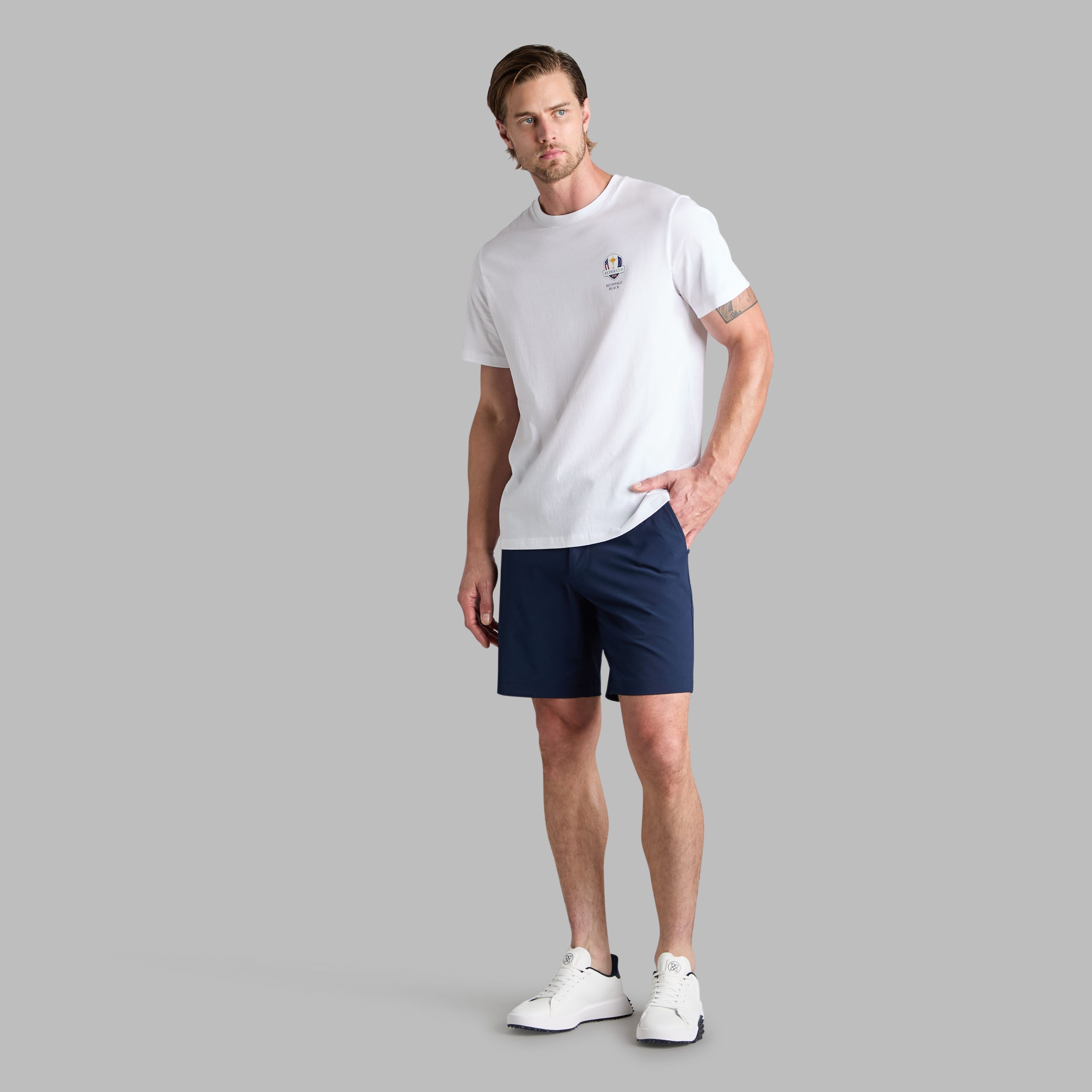 PERFECT FOR OFF THE COURSE, THIS 2025 RYDER CUP TEE IS A CLASSIC ADDITION TO ANY PLAYER’S WARDROBE. DESIGNED WITH A RIBBED CREWNECK AND MADE ENTIRELY OF SOFT COTTON FOR BREATHABILITY AND COMFORT, THIS STAPLE GOES WHEREVER YOUR DAY TAKES YOU. – G/FORE GMK250010RC